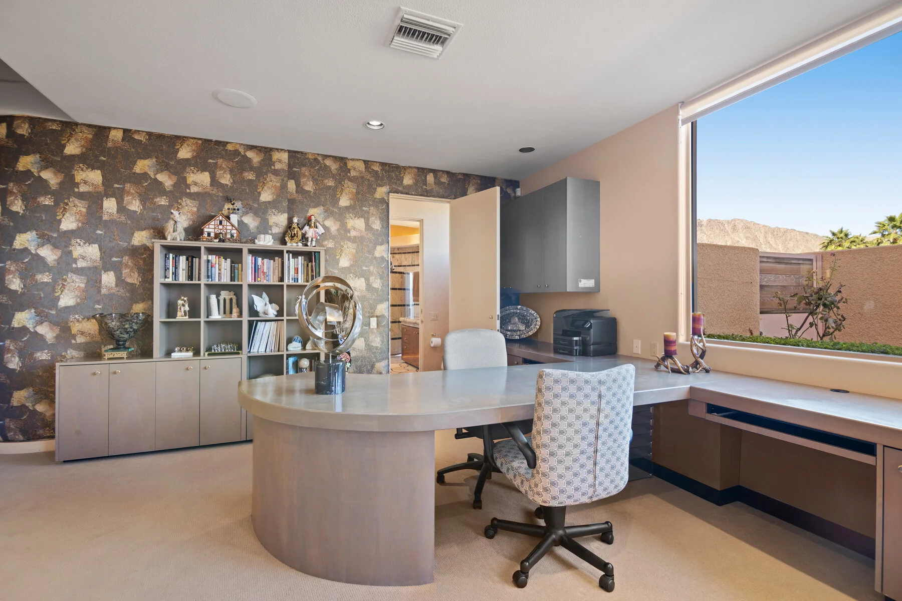 This 6 bedroom 7.5 bath home is the perfect desert paradise. Featured in the Robb Report Magazine, 50 best Vacation Homes, and on International broadcast television, it will be sure to satisfy your every need. Behind the beautifully etched handmade glass front doors you will find a custom swim up pool bar and spa with two waterfalls, complete with surround sound, a fireplace and outdoor patio with full Kitchen. Formal dining room seats 12 with handmade blown glass chandelier crafted by top Chihuly apprentice (364 pieces of glass) overlooking the backyard mountain and lake views. Formal living room is complete with full entertainment center with TV, electronic Media outlets, and various gaming devices. Living room also has a bar with 3 TVs to ensure that you do not miss any games on Sunday! Chefs Kitchen includes Viking, Dacor, and LG stainless steel appliances and custom granite tops. Each bedroom has a full bathroom with its own Shower, Tub, double vanity, granite and Italian marble throughout. Pool table, Sauna, guesthouse, mountain views and exclusive art throughout this home are just a few amazing features to ensure the perfect Desert Getaway.